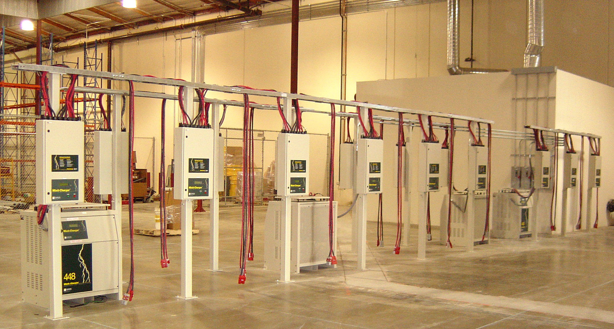 One Fast Charger replaces 4-10 conventional chargers for electrical savings |
